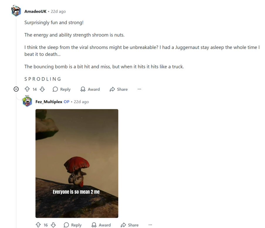 It seems that the meme origins of the Sprodlings have been carried on by players as well!